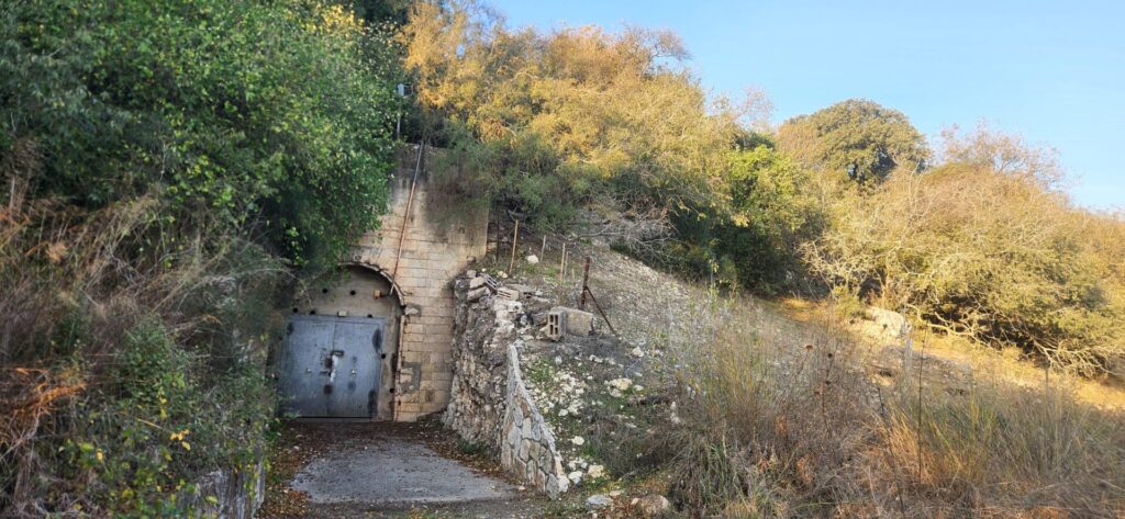 - בק"מ 7.3 עזבתי את הדרך 4/4, המשכתי בסינגל שמצפון לדרך ובמפגש עם הדרך (באוכף בק"מ 8) ירדתי עם השביל לכיוון צפון מערב עד לפתח מנהרת היין הסודית המוסתרת בחורש (ק"מ 8.6).